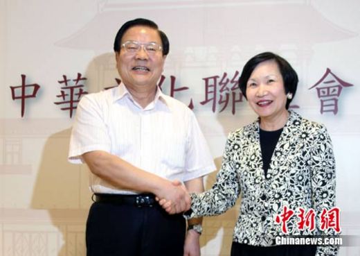 中華文化聯(lián)誼會名譽會長蔡武5日下午在臺北故宮參觀,院長周功鑫親自導(dǎo)覽。圖為蔡武與周功鑫參觀后與記者會面,談參訪感受。中新社記者 劉舒凌 攝