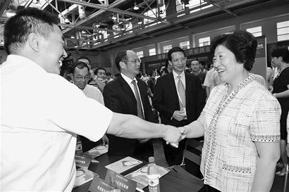 “書記、省長好!”在機械洽談區(qū),省委書記孫春蘭與省長黃小晶一出現(xiàn),正在洽談的臺商就不約而同地鼓起掌來。他們熱情地迎上前,七嘴八舌地介紹起自己帶來的招商項目。臺灣張鐵工廠股份有限公司董事長張清雄來自臺中,已在福建設廠。他對洽談會興趣濃厚!岸嗤顿Y,很好。這樣產(chǎn)業(yè)能夠群聚!睂O春蘭微笑著對張清雄說。張清雄頻頻點頭。