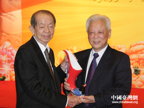 許文龍代表奇美集團(tuán)向民革中央贈(zèng)送紀(jì)念品(中國(guó)臺(tái)灣網(wǎng) 孫金誠(chéng) 攝)