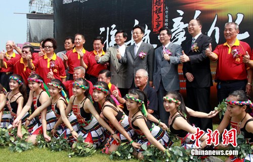 圖為彰化縣縣長(zhǎng)卓伯源(圖右4)、福建省對(duì)外文化交流協(xié)會(huì)副會(huì)長(zhǎng)朱清(圖右3),以及參與晚會(huì)舉辦的彰化十多所在地媽祖宮廟的負(fù)責(zé)人(圖中紅衣者),在晚會(huì)現(xiàn)場(chǎng)所在的彰化縣立體育場(chǎng)一同伸出大拇指,預(yù)祝晚會(huì)圓滿成功。王健 攝