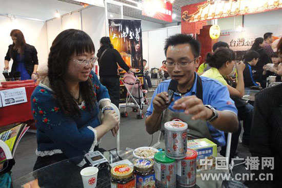 帶著島內(nèi)家喻戶曉的調(diào)味料品牌——“牛頭牌沙茶醬”來(lái)闖華北市場(chǎng)的王老板說(shuō),這種沙茶醬的創(chuàng)始人是一位去臺(tái)老兵,因?yàn)閿[面攤需要拌面醬,就想起家鄉(xiāng)沙爹醬的調(diào)制方法,結(jié)果無(wú)心插柳,醬賣(mài)得比面還好!如今,人們吃臺(tái)式小火鍋或海鮮撈都離不開(kāi)沙茶醬,公司也早已看好華北市場(chǎng)愛(ài)吃火鍋的人群,希望通過(guò)參加各種展會(huì),拓展商機(jī)!來(lái)自臺(tái)南的林沛瑜夫婦在接受記者采訪時(shí)也表示,“此番與北京消費(fèi)者‘親密接觸’,深刻感受到大陸民眾對(duì)臺(tái)灣特產(chǎn)的熱情及強(qiáng)大的購(gòu)買(mǎi)力!已有打算在北京創(chuàng)業(yè)發(fā)展了!