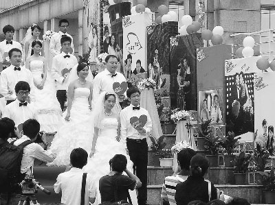 14日,“愛在海峽·情牽澎湖——兩岸新人愛情故事TV秀大賽”啟動儀式(下圖),在福州閩江公園舉行。來自福建的5對新人在祝福聲中開始了蜜月旅程,他們即將與臺灣的5對新人在澎湖相會,拍攝專屬愛情故事的電視短片,在兩岸媒體同步播出,接受網(wǎng)友和觀眾的票選,成為最受關注的海峽新人。