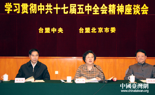 臺盟中央、臺盟北京市委19日下午聯(lián)合在京召開“學習貫徹中共十七屆五中全會精神座談會” (中國臺灣網 孫金誠 攝)