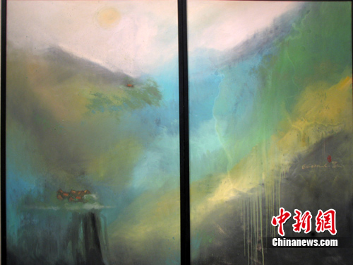在浙江西子博物館記者見(jiàn)到了陳歡先生,他打趣地說(shuō),在臺(tái)灣別人都說(shuō)他是“臺(tái)灣的吳冠中”,“我的畫(huà)有一種東方的禪意!标悮g說(shuō),他采用的是當(dāng)代結(jié)合傳統(tǒng)水墨畫(huà)的意境,而且擺脫了純種稠密的油彩,用一種輕薄的手法自由地盡情流動(dòng)于畫(huà)面之上。