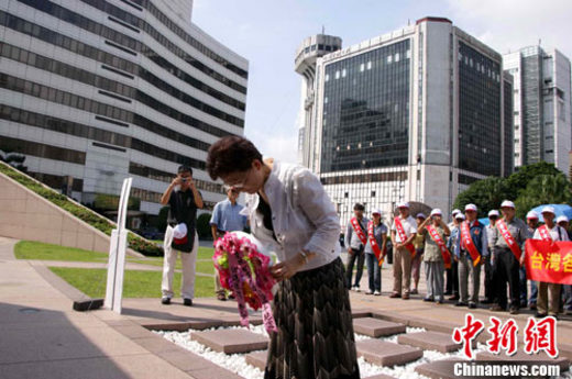 10月25日,臺(tái)灣民間團(tuán)體中國(guó)統(tǒng)一聯(lián)盟與各界代表約百人,在臺(tái)北中山堂“抗日戰(zhàn)爭(zhēng)勝利暨臺(tái)灣光復(fù)紀(jì)念碑”前,舉行慶祝臺(tái)灣光復(fù)65周年活動(dòng),藉此對(duì)英勇抗日志士表達(dá)敬意與追思。 中新社記者 陳立宇 攝