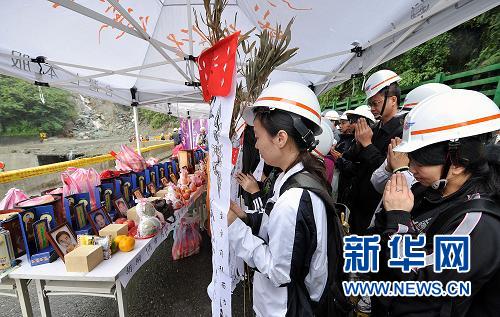 在莊嚴簡素的公祭儀式上,20位罹難者的照片在鮮花的簇擁中并排掛在祭臺中央,公祭現(xiàn)場擺放著大陸及臺灣各界送來的花籃和挽聯(lián)。