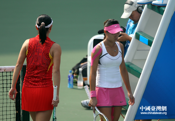 中國(guó)臺(tái)灣網(wǎng)11月16日廣州消息 第十六屆廣州亞運(yùn)會(huì)女子網(wǎng)球團(tuán)體賽決賽正在進(jìn)行,中國(guó)隊(duì)同中華臺(tái)北隊(duì)展開金牌爭(zhēng)奪戰(zhàn),中國(guó)隊(duì)選手彭帥對(duì)陣中華臺(tái)北隊(duì)選手張凱貞,奉獻(xiàn)第一場(chǎng)單打。(記者 鐘寶華)