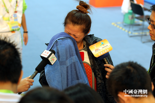 賽后接受媒體采訪時,楊淑君拭淚不斷。(中國臺灣網 鐘寶華 攝)