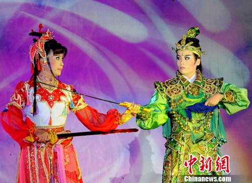 隨著一場(chǎng)以現(xiàn)代光影技術(shù)演繹,華美富麗的傳統(tǒng)歌仔戲17日晚在福建漳州上演,為期3天的海峽兩岸歌仔戲藝術(shù)節(jié)接近了尾聲。