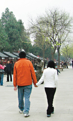 2008年Tom和Kiki漫步于西安風(fēng)景區(qū),當(dāng)時Tom已發(fā)病,左肩消瘦,沒辦法抬起,左側(cè)的腿和腳也開始不舒服,走久一點就會酸。