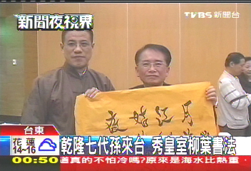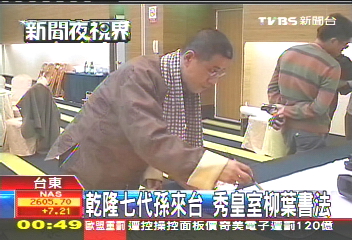 中國臺灣網(wǎng)12月9日消息 據(jù)臺灣TVBS電視臺報道,清朝皇帝乾隆第7代嫡孫愛新覺羅·恒紹12月8日隨吉林文化交流團赴臺訪問,作為書法家的他,向島內(nèi)民眾展示了他特殊的皇家柳葉體書法。