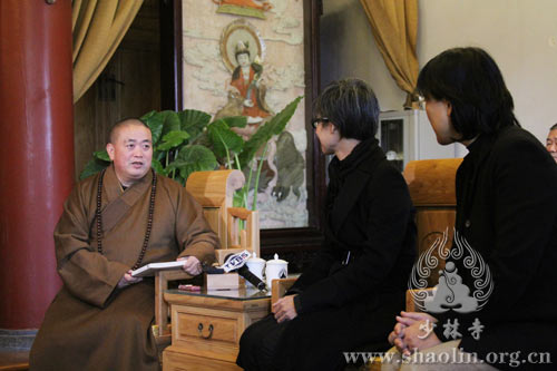 在方丈室,記者們就少林寺在傳播少林文化、慈善活動、恢復少林藥局及少林寺禪堂等問題,與釋永信方丈進行了友好地訪談。