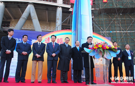 東莞臺商大廈17日舉行封頂儀式,王毅、蔣孝嚴等嘉賓出席。(中國臺灣網(wǎng) 張弛 攝)