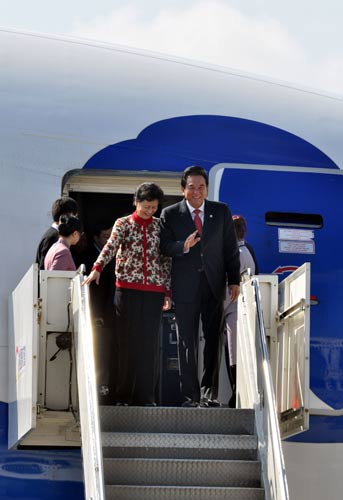 20日中午陳云林搭機抵達桃園機場。他向守候媒體及接機人員揮手。海峽交流基金會副董事長高孔廉等人前往接機,現(xiàn)場并有大批媒體守候。 “中央社”圖