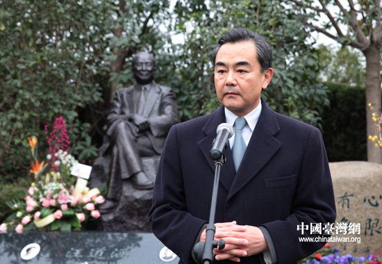 中國(guó)臺(tái)灣網(wǎng)12月24日上海消息 12月24日,中共中央臺(tái)辦和海協(xié)會(huì)在上海為汪道涵同志逝世五周年舉行了簡(jiǎn)短而隆重的祭奠活動(dòng),王毅主任在現(xiàn)場(chǎng)發(fā)表講話。