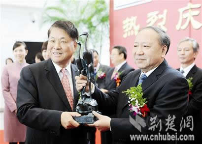 圖為:省政協(xié)副主席陳春林(右)與中華航空總經(jīng)理孫洪祥交換禮物