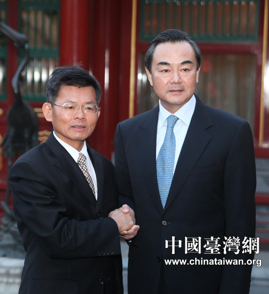 3月22日下午,中共中央臺(tái)辦主任王毅在北京釣魚臺(tái)賓館會(huì)見來訪的臺(tái)灣前高雄縣長楊秋興一行!。ㄖ袊_(tái)灣網(wǎng) 田云鵬 攝)