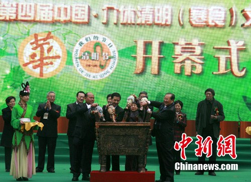 第九屆海峽兩岸中華傳統(tǒng)文化與現(xiàn)代化研討會暨第四屆中國·介休清明(寒食)文化節(jié)于4月1日在山西省介休市綿山風(fēng)景區(qū)開幕。程濤 攝