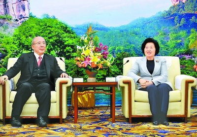 (福建)省委書記孫春蘭與中國(guó)國(guó)民黨榮譽(yù)主席吳伯雄親切會(huì)談。 記者 鄭杰 攝
