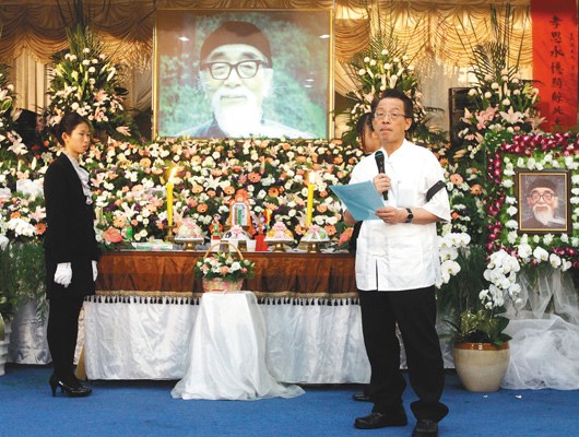 經(jīng)學(xué)宗師愛新覺羅·毓鋆10日舉行告別式,毓老的學(xué)生劉君祖代表緬懷先師。 聯(lián)合報(bào)圖