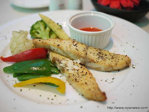 另外一道“香烤杏仁青衣佐魚柳”,采選大西洋深海魚,本身魚肉的油脂豐富,為了解除油膩感,店家先蒸后烤,用海鹽跟黑胡椒單純提味。貌似臺灣島形的魚柳,表皮微酥,但肉質(zhì)偏干,像歐美人士吃魚柳時,喜歡享受魚肉豐潤甜嫩,但這里的魚柳比較適合喜歡健康的。