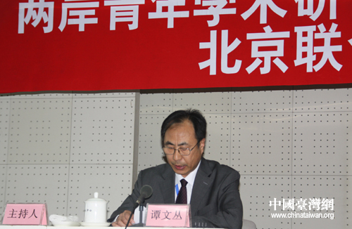 北京聯(lián)合大學臺灣研究院常務副院長兼黨支部書記譚文叢主持開幕式。(中國臺灣網(wǎng) 李杰 攝)