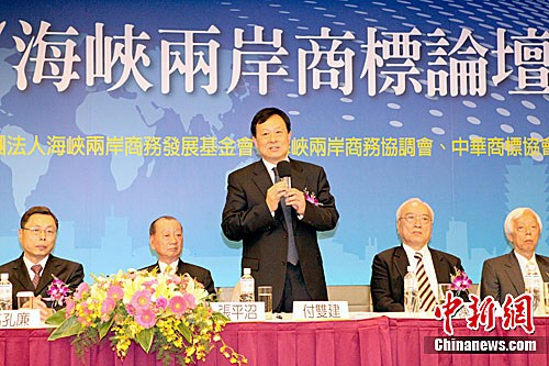 5月10日,國家工商行政管理總局副局長付雙建(中)率中華商標協(xié)會代表團,參加在臺北舉行的2011海峽兩岸商標論壇。付雙建表示,兩岸商標保護與發(fā)展形勢漸入佳境。中新社發(fā) 路梅 攝