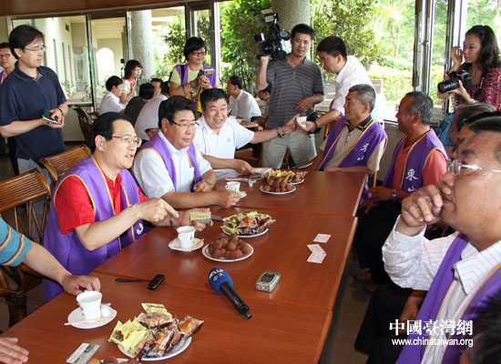 付志方一邊品嘗著臺南自產(chǎn)的咖啡,一邊向身邊的農(nóng)民詢問著咖啡豆種植面積、生長周期、產(chǎn)品銷售情況等問題!拔兜来_實(shí)很好,這都是我喝的第二杯了!备吨痉皆诟兄x臺南農(nóng)民朋友熱情的招待時,指著新端上來的咖啡豎起大拇指稱贊道。