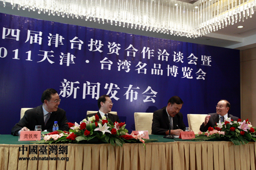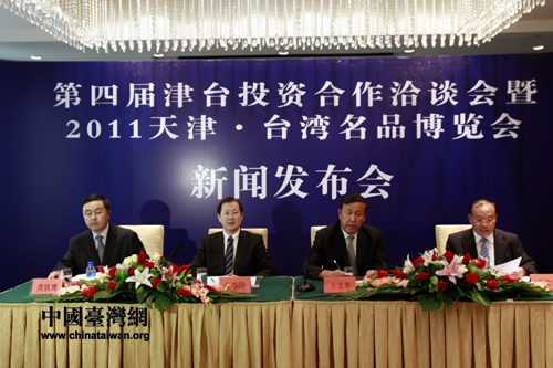 第四屆津臺投資合作洽談會暨2011天津·臺灣名品博覽會新聞發(fā)布會在津舉辦。圖為發(fā)布會現(xiàn)場。(中國臺灣網(wǎng) 馬迪 攝)