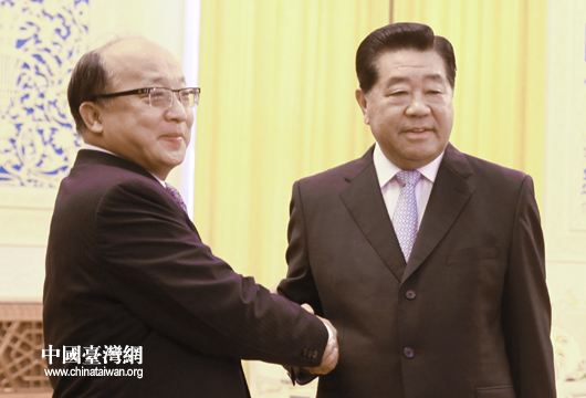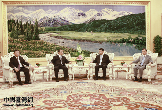 7日下午,中共中央政治局常委、全國政協(xié)主席賈慶林在人民大會(huì)堂會(huì)見來京參訪的臺(tái)灣臺(tái)中市市長胡志強(qiáng)一行。(中國臺(tái)灣網(wǎng) 陳佳慧 攝)