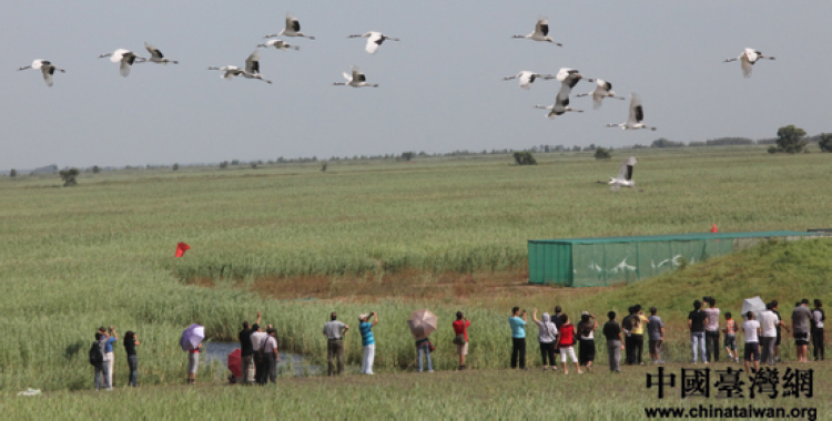 海外臺商一行走進扎龍國家自然保護區(qū),觀賞美禽丹頂鶴。(中國臺灣網(wǎng) 芮益芳 攝)