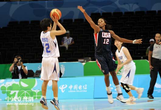 第二節(jié),雖然中華臺北隊的姑娘們在團體配合及快攻方面表現(xiàn)出色,但無奈美國隊利用身高及技術(shù)優(yōu)勢,在第2節(jié)結(jié)束時將比分擴大為36:55。
