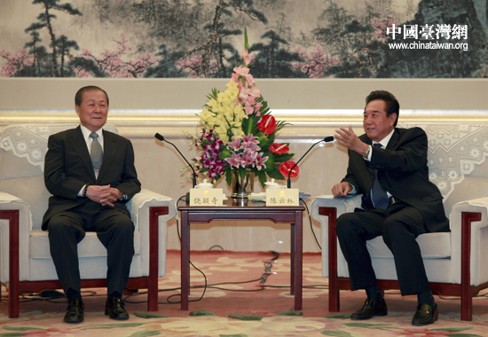 25日上午,全國政協(xié)港澳臺僑委員會主任、海峽兩岸關系協(xié)會會長陳云林在北京會見了臺灣兩岸民意代表交流基金會董事長饒穎奇為團長的臺灣民意代表交流參訪團。(中國臺灣網 田云鵬 攝)