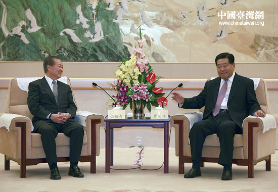 中國(guó)臺(tái)灣網(wǎng)8月25日北京消息 25日下午,中共中央政治局常委、全國(guó)政協(xié)主席賈慶林在全國(guó)政協(xié)禮堂會(huì)見(jiàn)了臺(tái)灣兩岸民意代表交流基金會(huì)董事長(zhǎng)饒穎奇為團(tuán)長(zhǎng)的臺(tái)灣民意代表交流參訪團(tuán)一行。(中國(guó)臺(tái)灣網(wǎng) 田云鵬 攝)