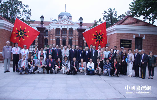 8日上午,以黃埔同學(xué)會會長林上元為代表的黃埔同學(xué),及海內(nèi)外黃埔組織代表、黃埔后裔及親友等20余人,在辛亥革命武昌起義紀念館合影。(中國臺灣網(wǎng) 李丹 攝)