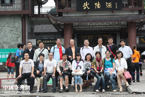 第八屆海峽兩岸媒體湖南聯(lián)合采訪團成員在湖南張家界武陵源景區(qū)合影留念。(中國臺灣網(wǎng)網(wǎng) 王怡然 攝)