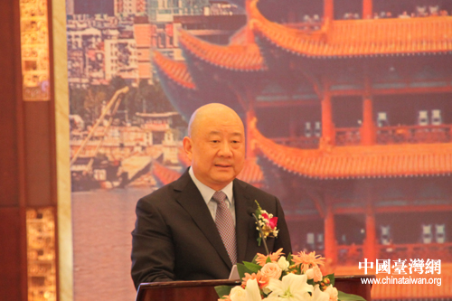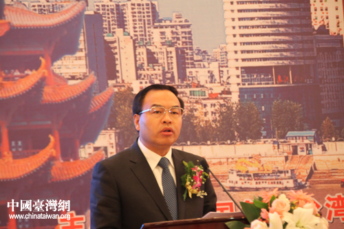 2011鄂臺(tái)產(chǎn)業(yè)合作與發(fā)展論壇7日上午在武昌洪山賓館舉行,武漢市長唐良智發(fā)表演講。(中國臺(tái)灣網(wǎng) 楊麗 攝)
