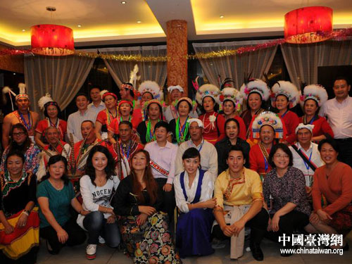 中國臺灣網(wǎng)10月13日成都消息 10月10日至17日,應(yīng)全國臺聯(lián)邀請,來自臺灣花東地區(qū)的阿美人頭目長老一行20余人赴四川參訪交流。12日晚,來自四川省民族歌舞團(tuán)的少數(shù)民族演員與來訪的臺灣少數(shù)民族長老團(tuán)舉行了熱烈的交流聯(lián)誼活動。