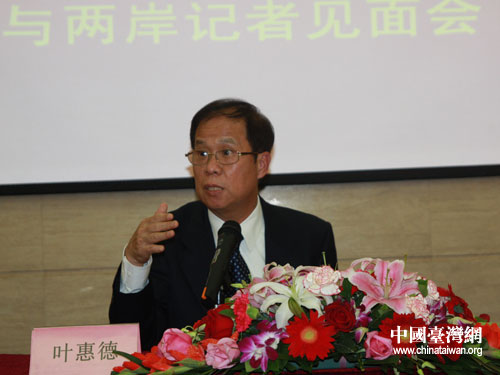 全國臺企聯(lián)常務(wù)副會長、新聞發(fā)言人葉惠德介紹相關(guān)情況。(中國臺灣網(wǎng)記者 宿靜 攝)