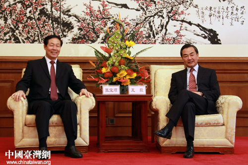 簽字儀式開始前,國臺(tái)辦主任王毅與安徽省委書記張寶順舉行了會(huì)談。(中國臺(tái)灣網(wǎng) 楊麗 攝)