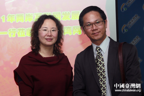 中國(guó)臺(tái)灣網(wǎng)總經(jīng)理兼總編輯劉曉輝(左)與臺(tái)灣嘉賓合影。(中國(guó)臺(tái)灣網(wǎng) 于斯文 攝)