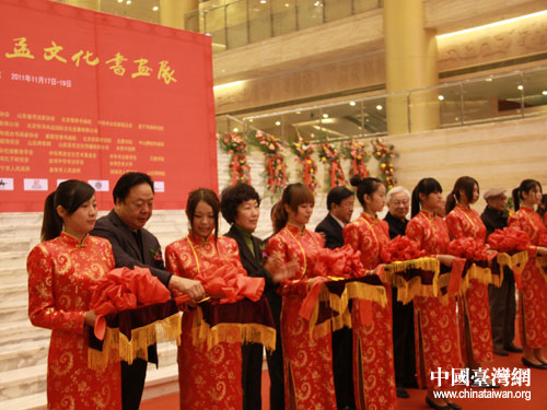中國臺灣網(wǎng)11月18日濟(jì)南消息 海峽兩岸孔孟文化書畫展11月17日上午在山東博物館開幕。山東省政協(xié)副主席、黨組副書記喬延春,省政協(xié)副主席栗甲,省臺辦副巡視員莊衛(wèi)平,臺灣中華書院院長李奇茂,著名書畫大師孫大石等出席開幕式。