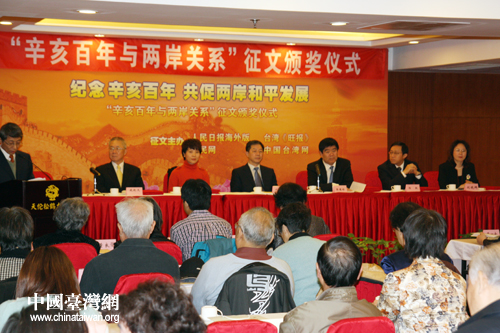 由人民日報海外版、臺灣《旺報》、人民網(wǎng)、中國臺灣網(wǎng)聯(lián)合舉辦的“辛亥百年與兩岸關(guān)系”征文活動,11月24日在北京舉行頒獎儀式。(中國臺灣網(wǎng) 楊麗 攝)