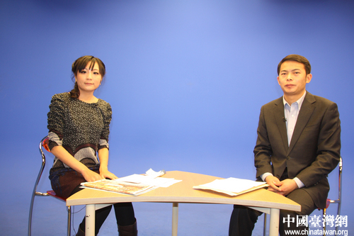 中國宋慶齡基金會聯(lián)絡(luò)部臺灣處李章程和中國臺灣網(wǎng)主持人董潔在節(jié)目錄制現(xiàn)場。(中國臺灣網(wǎng) 段富兵 攝)