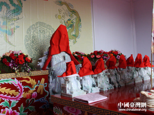 10日下午,湄洲媽祖祖廟受贈(zèng)翡翠媽祖像儀式,在莆田市湄洲島天后廣場(chǎng)舉行,圖為開(kāi)光典禮前的翡翠媽祖像。(中國(guó)臺(tái)灣網(wǎng) 楊麗 攝)