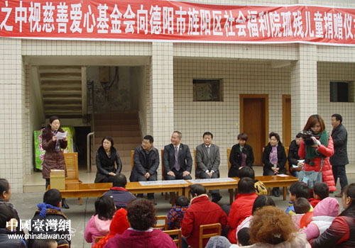 臺灣中視慈善基金會向德陽旌陽區(qū)福利院捐贈(zèng)儀式現(xiàn)場。(德陽市臺辦 甘和林 攝)