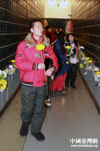 臺灣青年學生向被731部隊殘害致死的殉難者敬獻花束。(中國臺灣網(wǎng) 于斯文 攝)