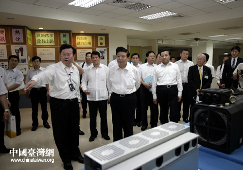 2011年7月14日,山東省省長(zhǎng)姜大明在臺(tái)灣臺(tái)中訪問車王電子公司。(圖片來(lái)源:山東省臺(tái)辦)