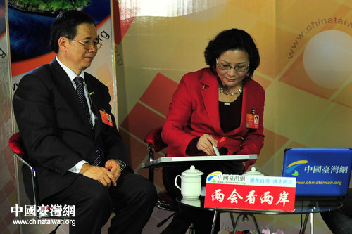 中國(guó)臺(tái)灣網(wǎng)3月10日北京消息 今年是十一屆全國(guó)人大代表履職的最后一年,13人的臺(tái)灣代表團(tuán)里,陳云英無(wú)疑是最受關(guān)注的代表之一!爸袊(guó)特殊教育第一人”、世界銀行首席經(jīng)濟(jì)學(xué)家林毅夫的太太……一系列光環(huán)籠罩下,陳云英卻一直以近乎“戰(zhàn)戰(zhàn)兢兢”的心態(tài)認(rèn)真履行著人大代表的職責(zé)。在接受中國(guó)臺(tái)灣網(wǎng)視頻專(zhuān)訪時(shí),學(xué)習(xí),是她一直掛在嘴邊的詞。面對(duì)記者,陳云英也透露了內(nèi)心的小秘密——“我想爭(zhēng)取連任,繼續(xù)為兩岸關(guān)系發(fā)展、為臺(tái)胞權(quán)益盡綿薄之力”。