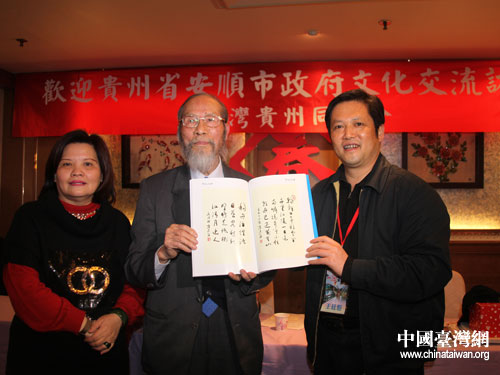 貴州鄉(xiāng)親向交流團團長王廷愷贈送詩集(安順市臺辦黃凱 攝)